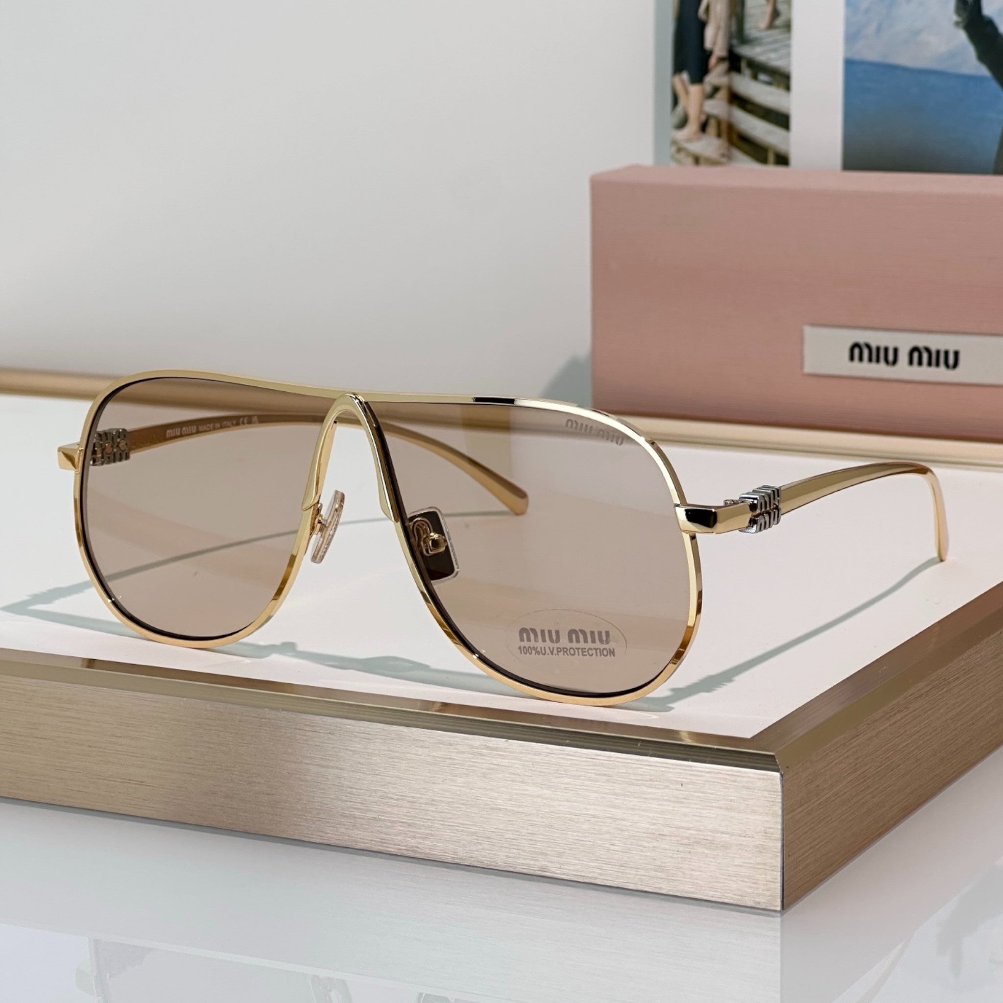 gözlüklerimiz için %100 UV400 korumalı organik lensler, asetat çerçeveler ve titanyum gibi en seçkin malzemeleri,