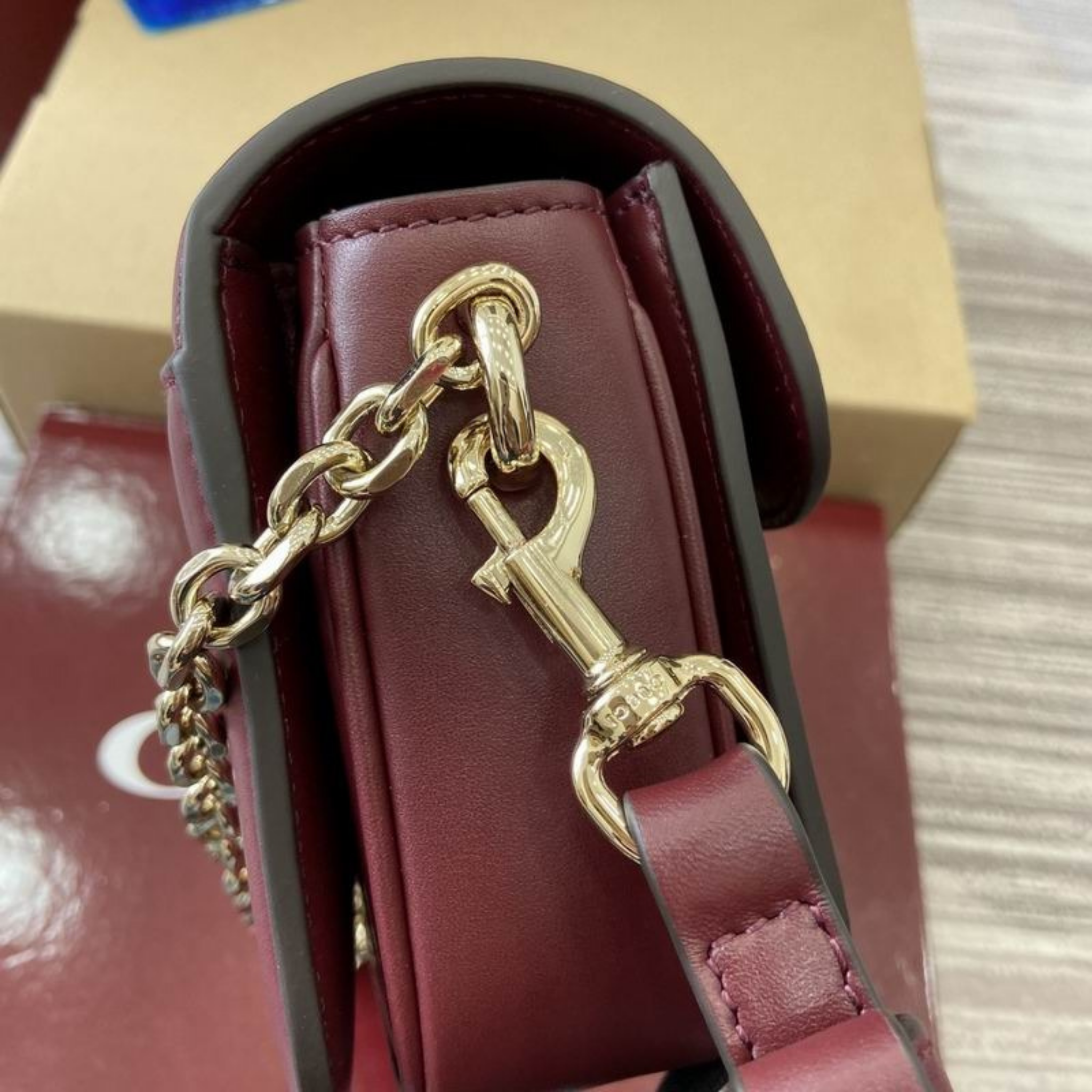 • Göz Alıcı Zincir Detayı: Kalın ve parlak altın rengi zincir askısı, çantayı bir aksesuardan öte bir mücevher parçasına dönüştürür.